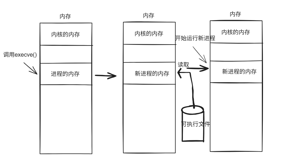 是 Unix/Linux 系统中一个核心的系统调用,用于在当前进程中执行一个新的程序。它的作用是将当前进程的代码、数据、堆栈等全部替换为新程序的内容(进程 ID 保持不变),因此也被称为 “进程替换”