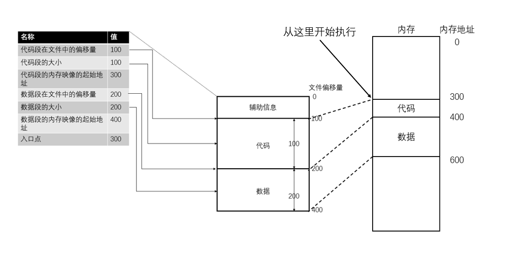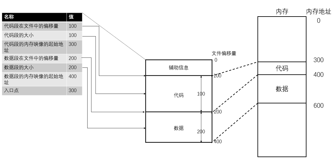 - 代码以外的变量等数据的数据段在文件中的偏移量,大小以及内存映像的起始地址