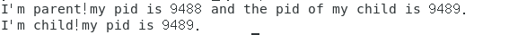 {printf("I'm parent!my pid is %d and the pid of my child is %d.\n",getpid(),pid_c);exit(EXIT_SUCCESS);