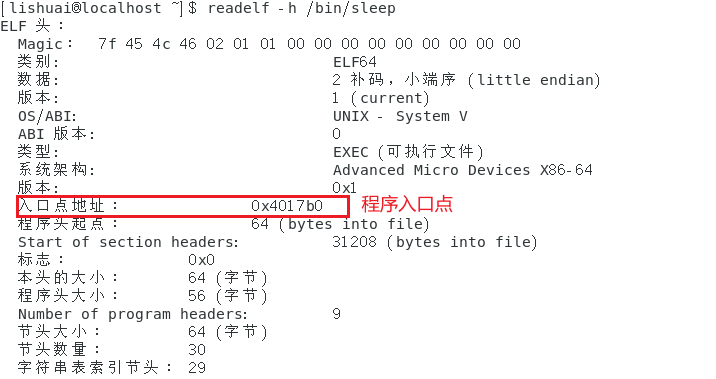 然而,Linux可执行文件的结构遵循名字为ELF(excutable and linkable format,可执行与可连接结构),ELF的相关信息可通过readelf命令来获取