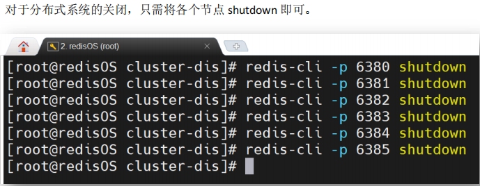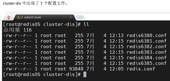 通过 cluster nodes 命令可以查看到系统中各节点的关系及连接情况。只要能看到每个节点给出 connected,就说明分布式系统已经成功搭建。