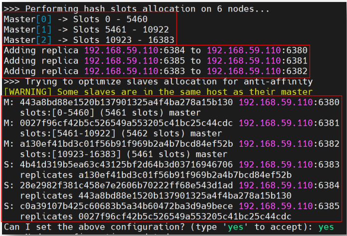 # --cluster replicas 1 指定每个 master 会带有一个 slave 作为副本