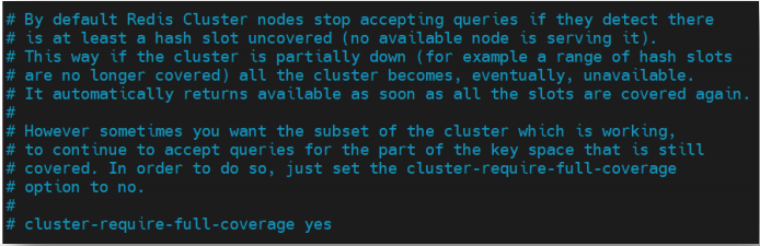 如果某slot范围对应节点的master与slave全部宕机,那么整个分布式系统是否还可以对外提供读服务,就取决于属性 cluster-require-full-coverage 的设置;