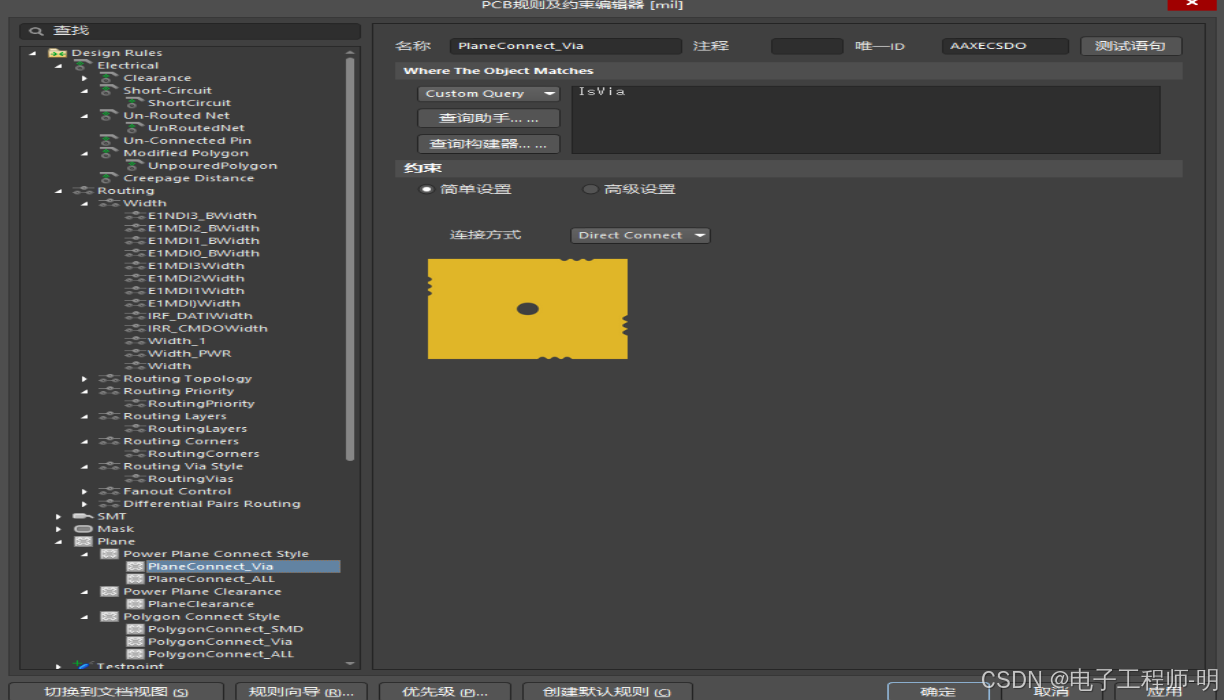 新建规则并设置其适用范围(例如,针对所有过孔,或特定元件的引脚)。在规则约束里,将连接方式选为 Relief Connect(即热风连接),并配置连接线数量和宽度。
