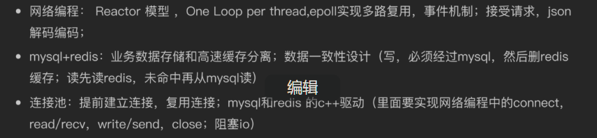 连接池:提前建⽴连接,复⽤连接;mysql和redis 的c++驱动(⾥⾯要实现⽹络编程中的connect,