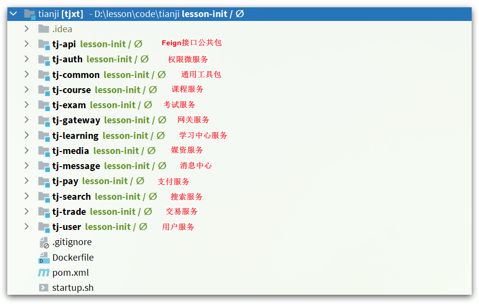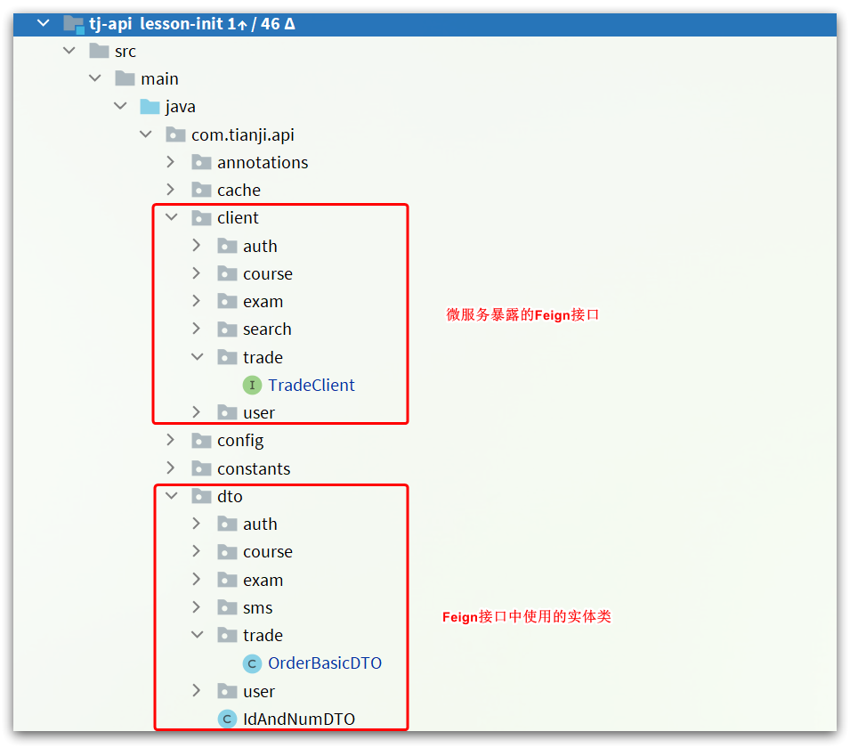中如果有对外暴露的Feign接口,需要定义到tj-api