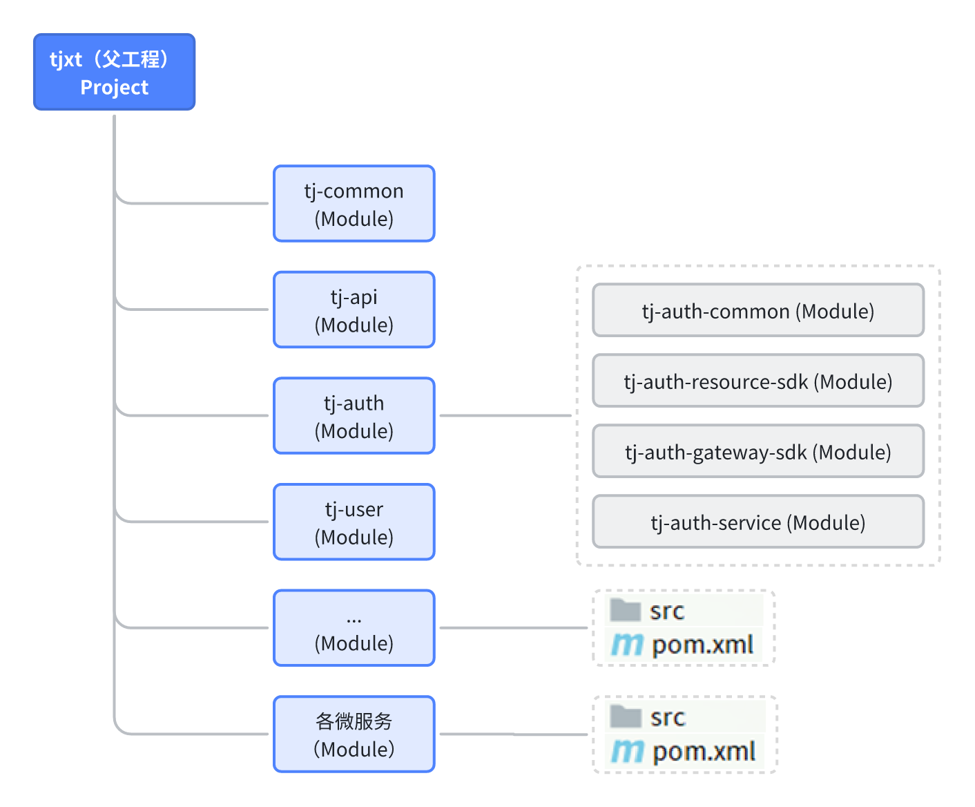 - 2)项目创建一个Project,项目下的每一个微服务都是一个Module,方便管理