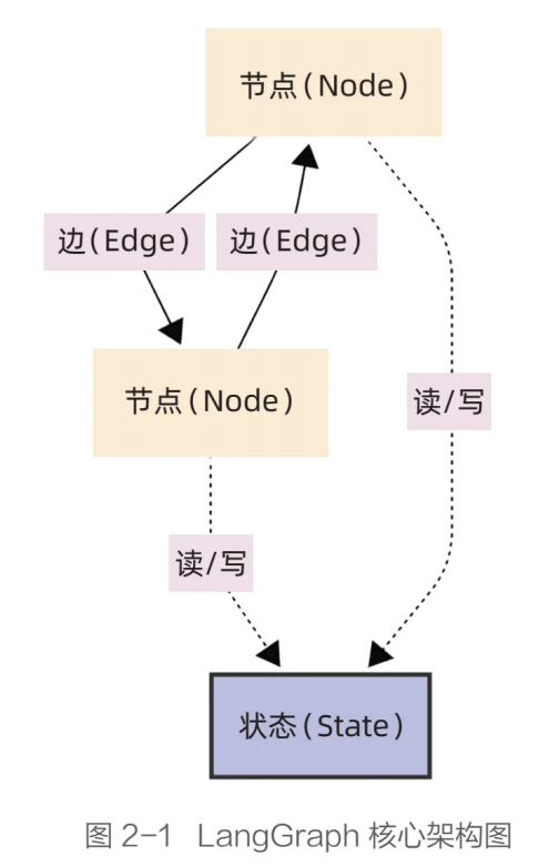 LangGraph 的核心架构如图 2-1 所示,三个要素缺一不可: