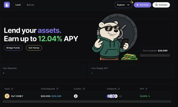 BEND 作为一个借贷协议,其本身提供了将 HONEY、wBERA、wETH、wBTC 等资产转化为原生收益渠道或循环策略入口的途径。