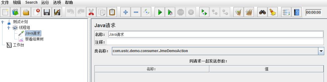 - 五:部署服务端,然后消费端为:启动jmeter,验证该jar功能是否正常,新建一个java请求