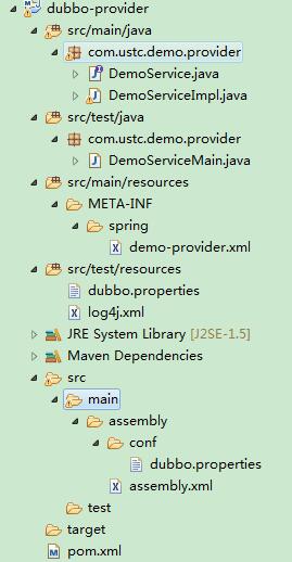1 <project xmlns="http://maven.apache.org/POM/4.0.0" xmlns:xsi="http://www.w3.org/2001/XMLSchema-instance"2 xsi:schemaLocation="http://maven.apache.org/POM/4.0.0 http://maven.apache.org/xsd/maven-4.0.0.xsd">3 <modelVersion>4.0.0</modelVersion>4 5 <groupId>com.ustc.demo</groupId>6 <artifactId>dubbo-provider</artifactId>7 <version>0.0.1-SNAPSHOT</version>8 <packaging>jar</packaging>9