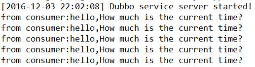这样调试发现消费端向服务端发送:How much is the current time?,然后服务端返回当前的时间,该dubbo接口的功能正常实现