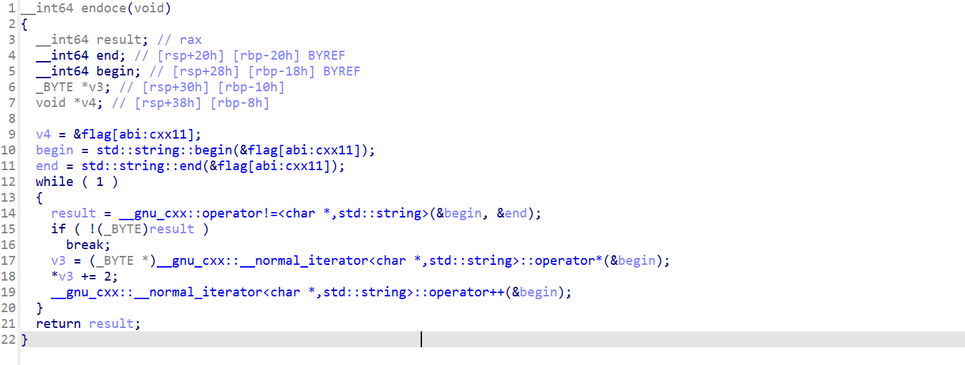 这个是encode函数的作用,大概就是对每个字符+=2,iterator应该是迭代器之类,怀疑是和字符迭代有关,可以认为是遍历字符串