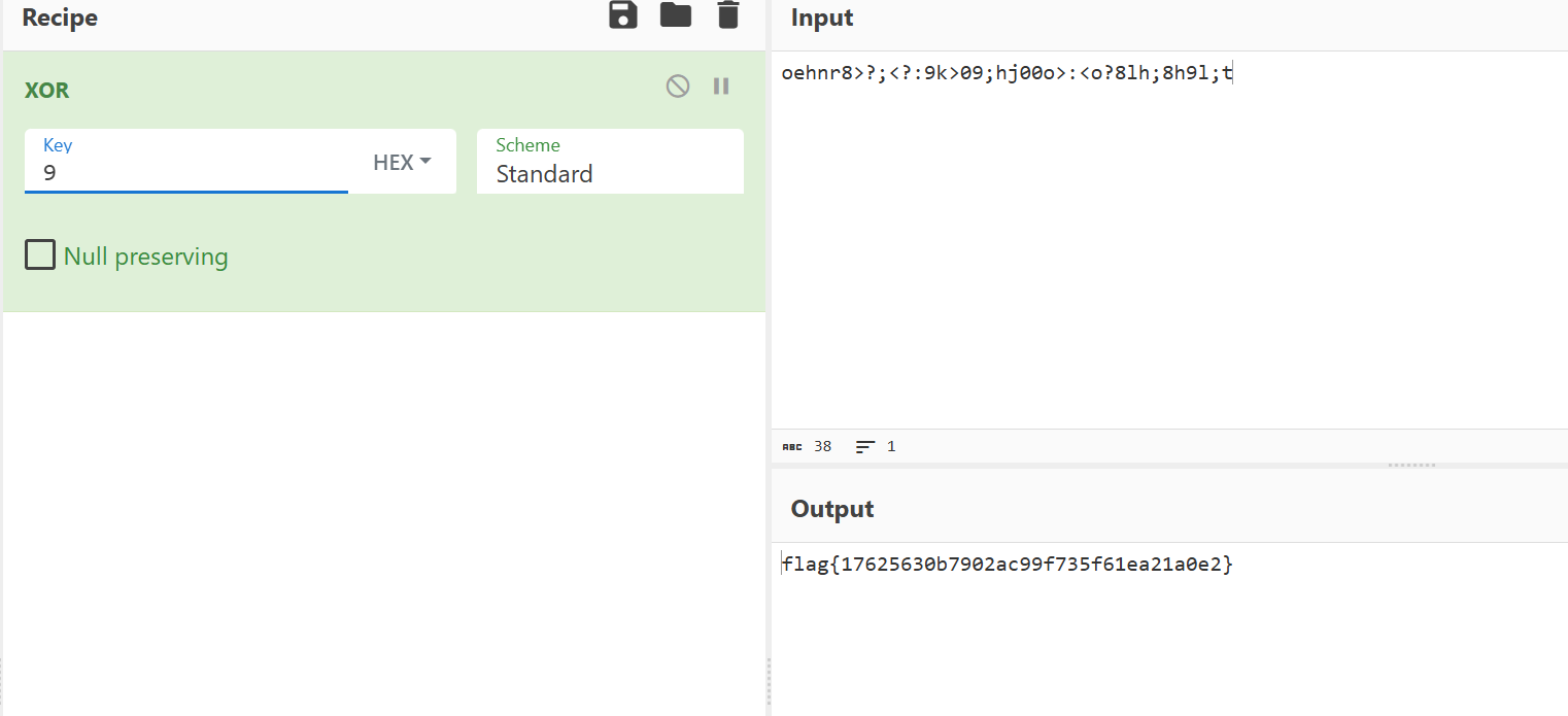 for i in cipher:flag+=chr(ord(i)^0xa)