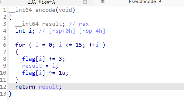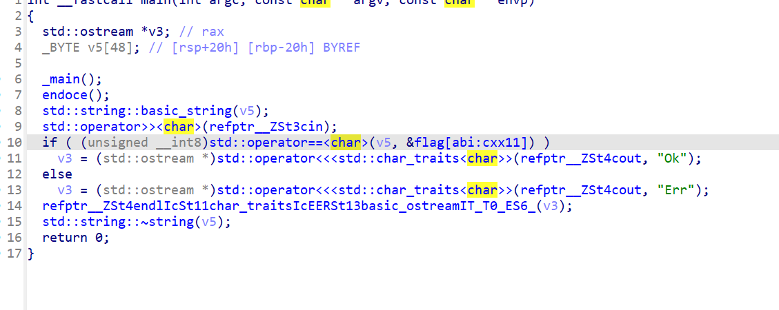 看样子先调用encode函数,Basic函数暂时没看到作用,然后cin并和encode后的flag比较
