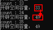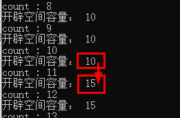 using namespace std;int main() {vector<int> vec;//最初容器没有元素,容量为空vec.reserve(10);//初始容量cout << "容量" << vec.capacity() << endl;vector<int>::iterator it;int i = 0;int count = 0;for (i = 0; i < 100; i++) {vec.push_back(i);count++;cout << "count : " << count << endl;cout << "开辟空间容量: " << vec.capacity() << endl;}return 0;