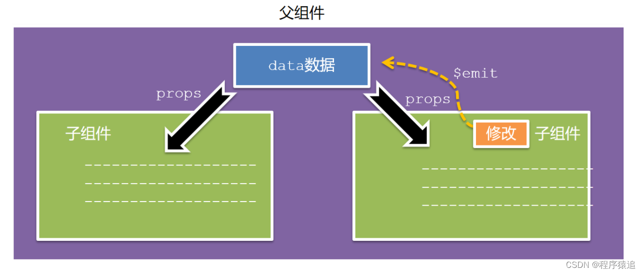 子组件利用 $emit 通知父组件修改更新。