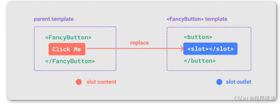 <slot>元素是一个插槽出口,表示了父元素提供的插槽内容将在哪里被渲染。