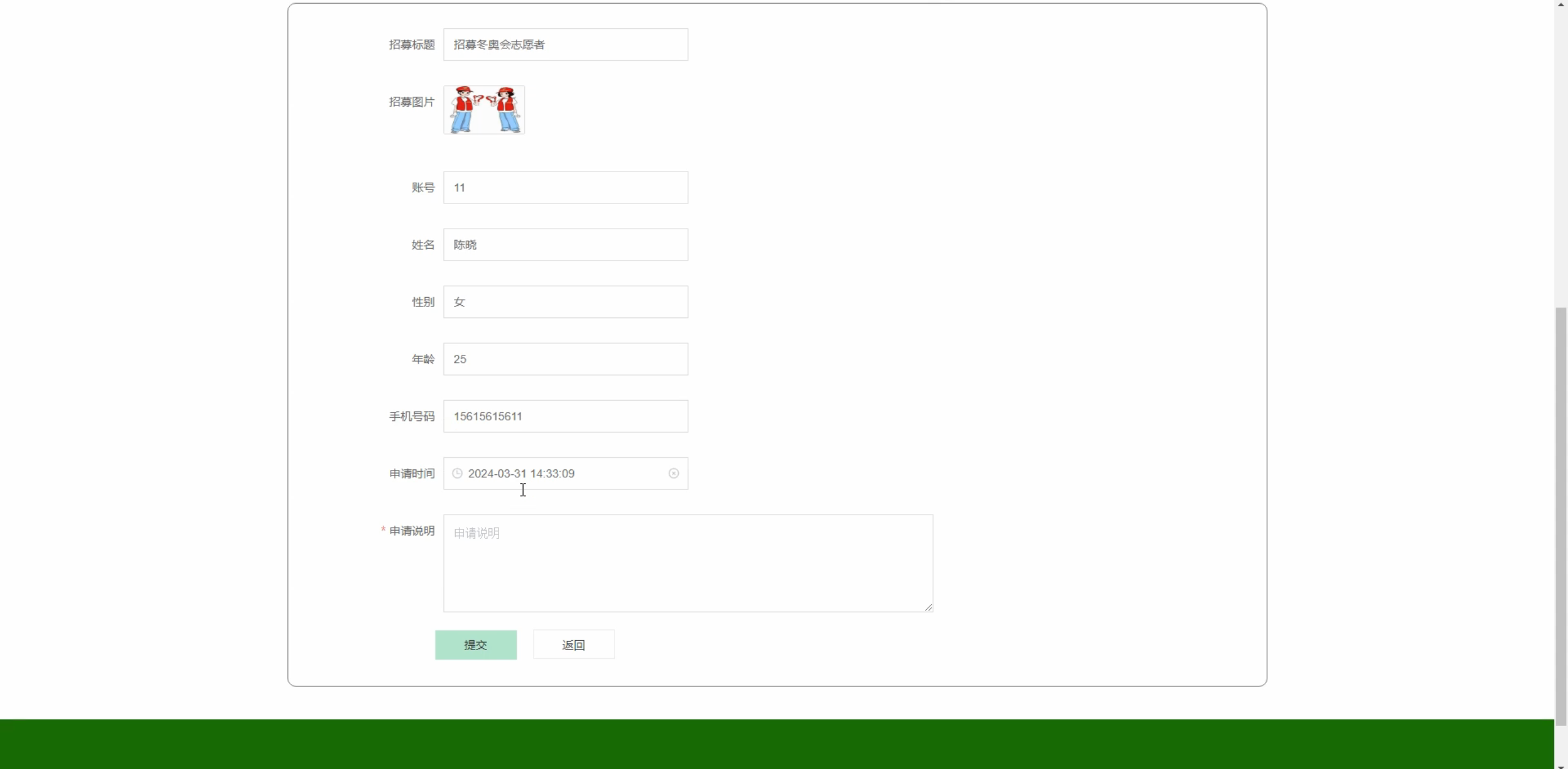 - 完成可运行的志愿者管理系统(含前端、后端、数据库脚本)。