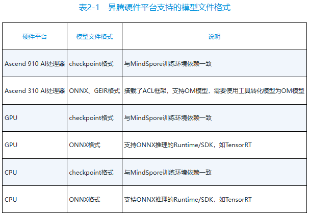 .air:MindSpore 的专有中间格式,包含网络结构和权重,可作为向昇腾 OM、TensorRT 引擎等格式转换的中间载体;