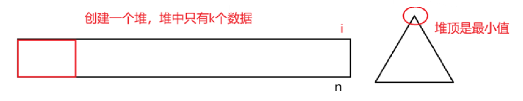 --用剩余的N-K个元素依次与堆顶元素来比较,不满足则替换堆顶元素: