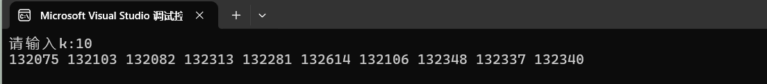 {// 造数据int n = 100000;srand(time(0));const char* file = "data.txt";FILE* fin = fopen(file, "w");if (fin == NULL){perror("fopen error");return;}for (int i = 0; i < n; ++i){int x = (rand() + i) % 1000000;fprintf(fin, "%d\n", x);}fclose(fin);