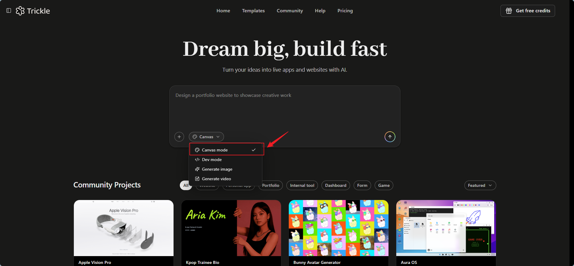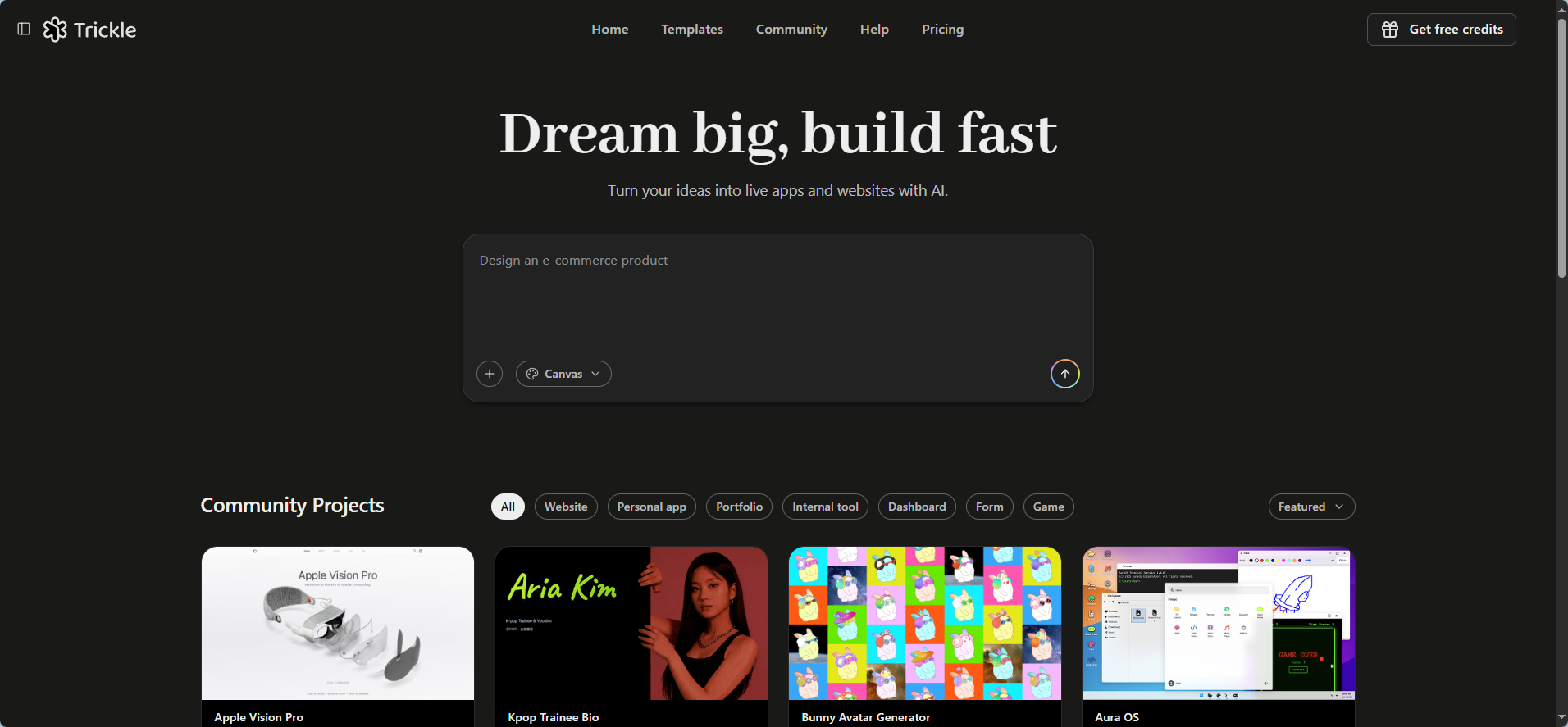 Trickle Magic Canvas 是全球首款用于 vibe coding 的 Agentic Canvas。它让人类与 AI 在可视化环境中协作共创,直接生成生产级可用的应用与网站。
