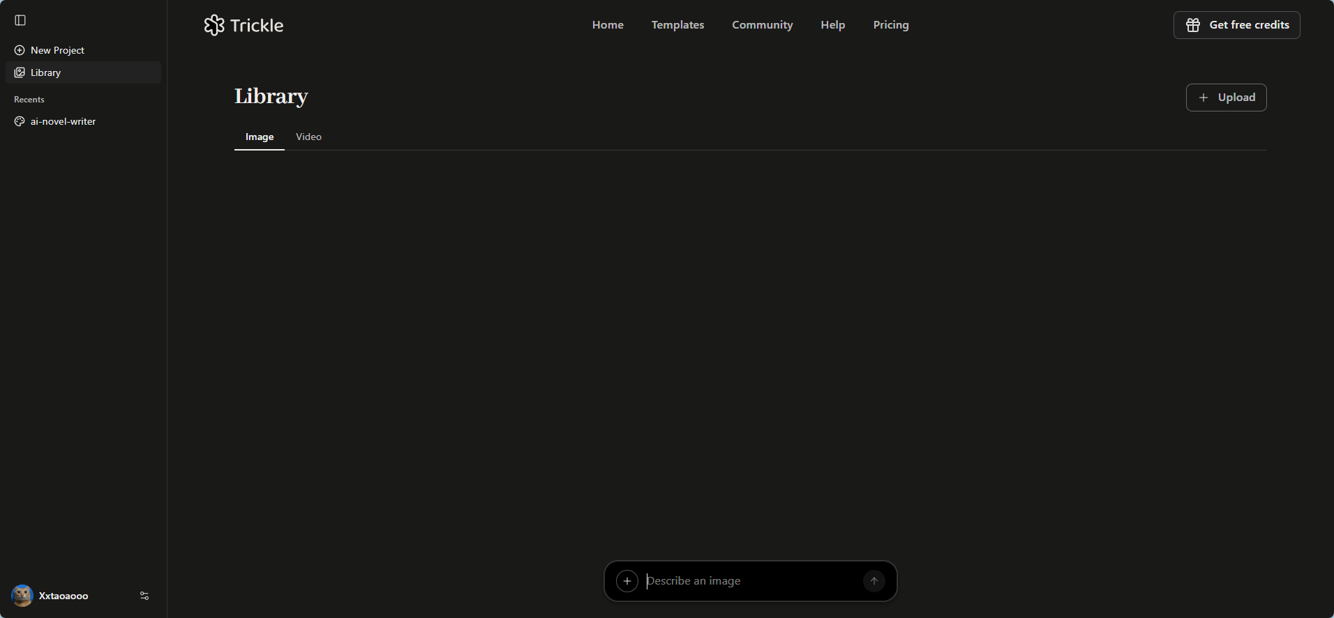通过Trickle平台进入注册,刚开始注册可以获取免费额度进行体验
