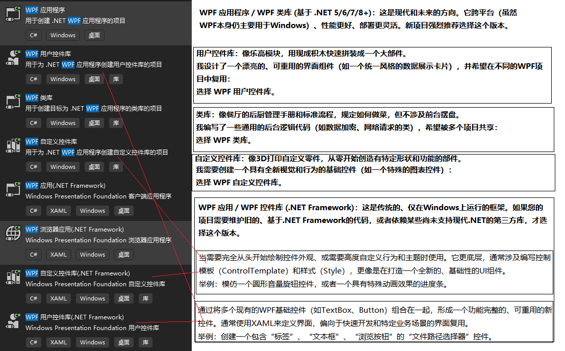 虽然都是库(.dll),但它们的专长不同。图片中主要有三种库模板: