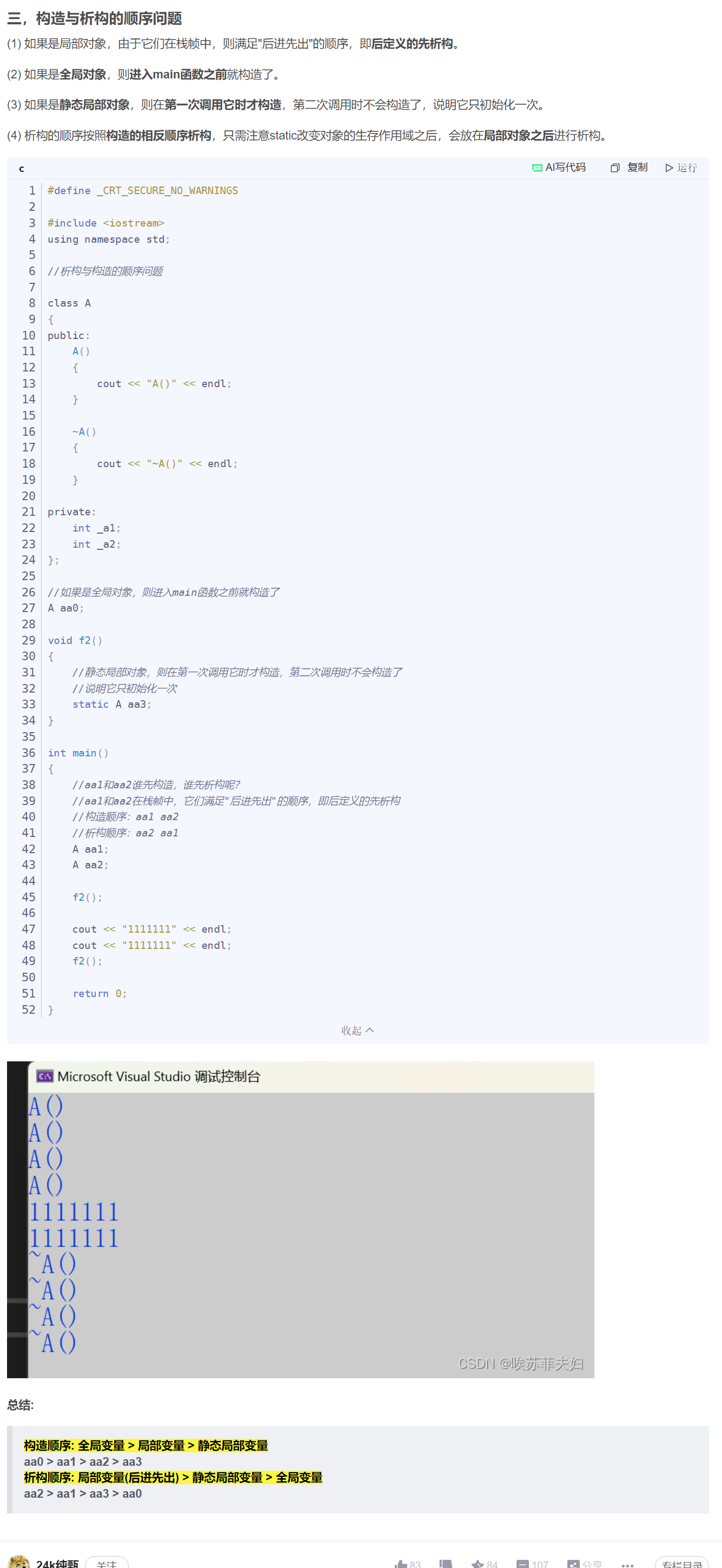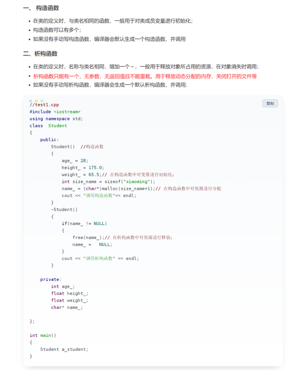 目录 一、构造函数和析构函数 1.1 简单总结 1.2 构造函数初始化列表 1.3 构造函数详细总结 1.4 顺序问题 一、构造函数和析构函数 1.1 简单总结 1.2 构造函数初始化列表 1.3 构造函数详细总结 1.4 顺序问题