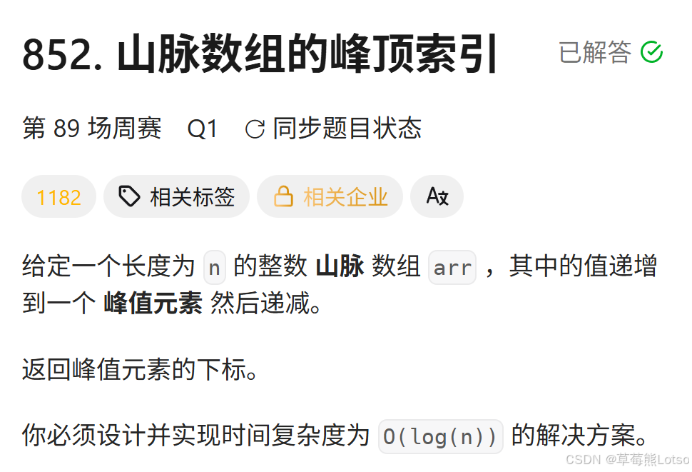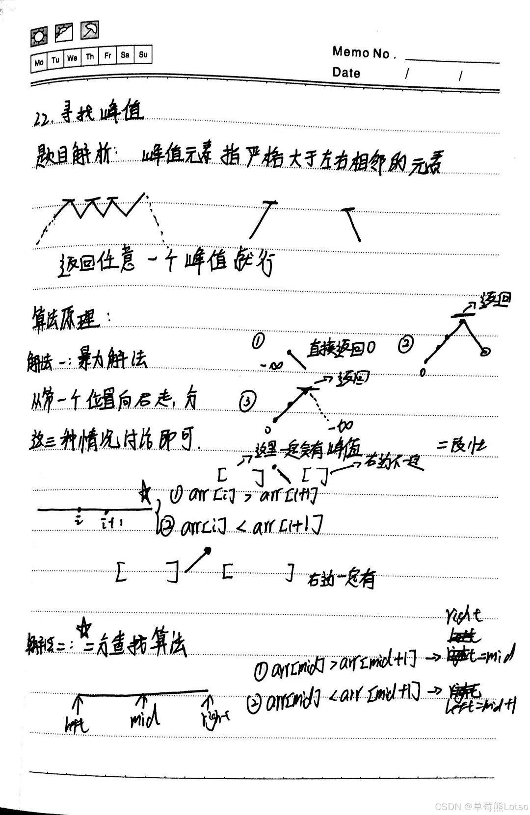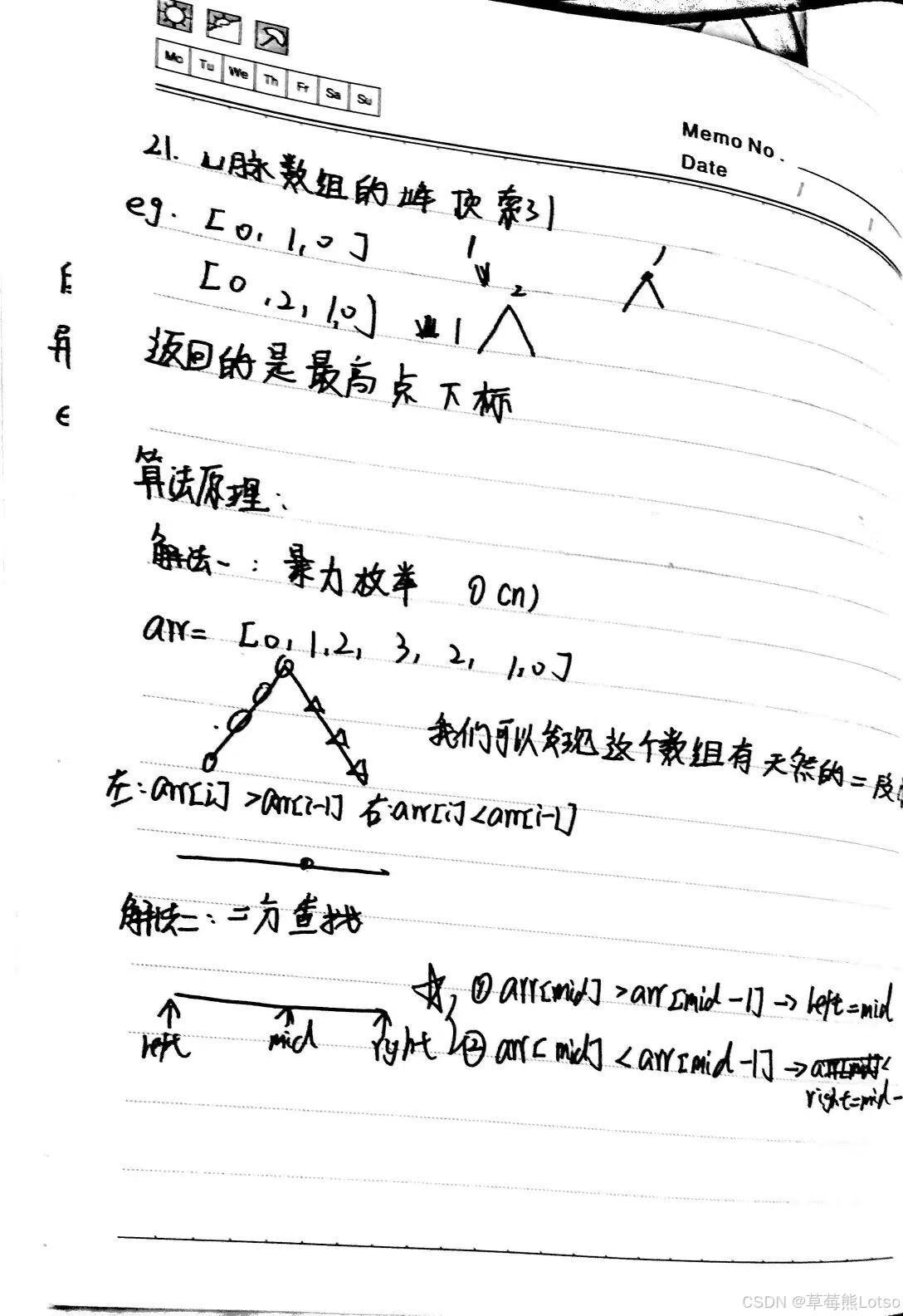 - 峰顶左边的数据特点:arr[i]>arr[i-1]&&arr[i]<arr[i+1],也就是呈上升趋势