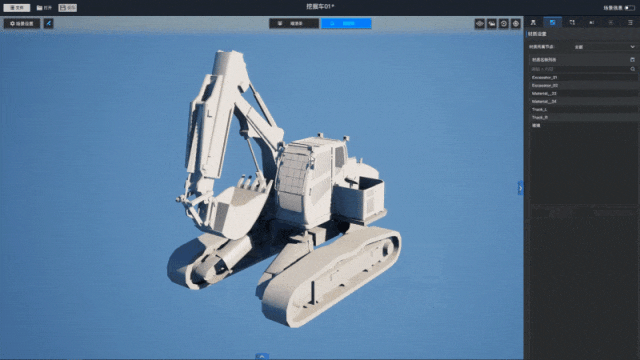 以下,我们以“挖掘机数字孪生模型”的全流程制作为例,拆解 图观模型编辑器 如何将一台静态挖掘机模型,变成可交互、可仿真、可数据联动的“数字工程设备”。