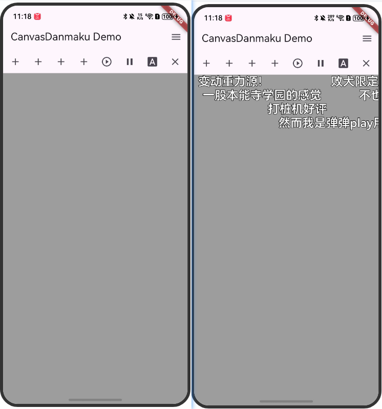 - **区域隔离**:通过`RepaintBoundary`将滚动弹幕和静态弹幕分为两个绘制区域,各自独立重绘,减少不必要的刷新。