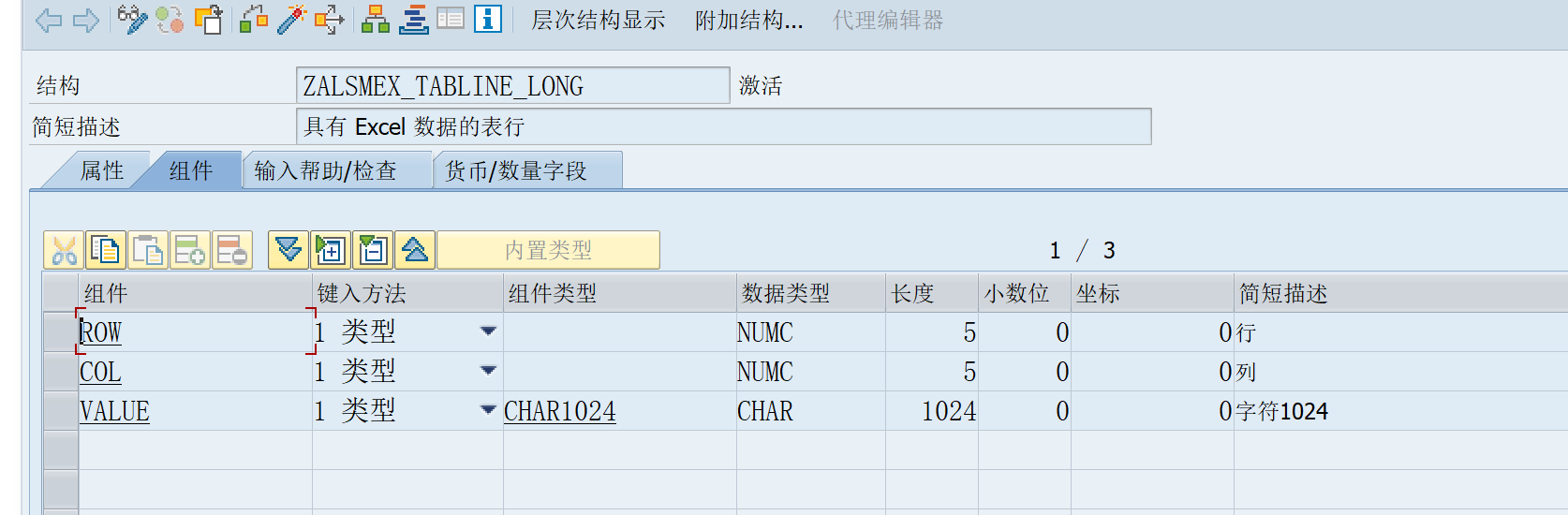 今天有个需求是批导一个长文本字段,大概500个字符长度,最开始使用的就是'TEXT_CONVERT_XLS_TO_SAP'这个函数,但是这个函数在接收字段的时候单元格有长度限制,就自动被截断了,然后我就直接换了一个函数使用,'ALSM_EXCEL_TO_INTERNAL_TABLE',然后修改限制的长度,如下: