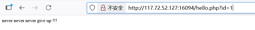 尝试更改请求中的id参数值,也有添加 or 1=1,or 1=2,and 1=1,and1=2,发现都没变化,都是显示never never never give up。