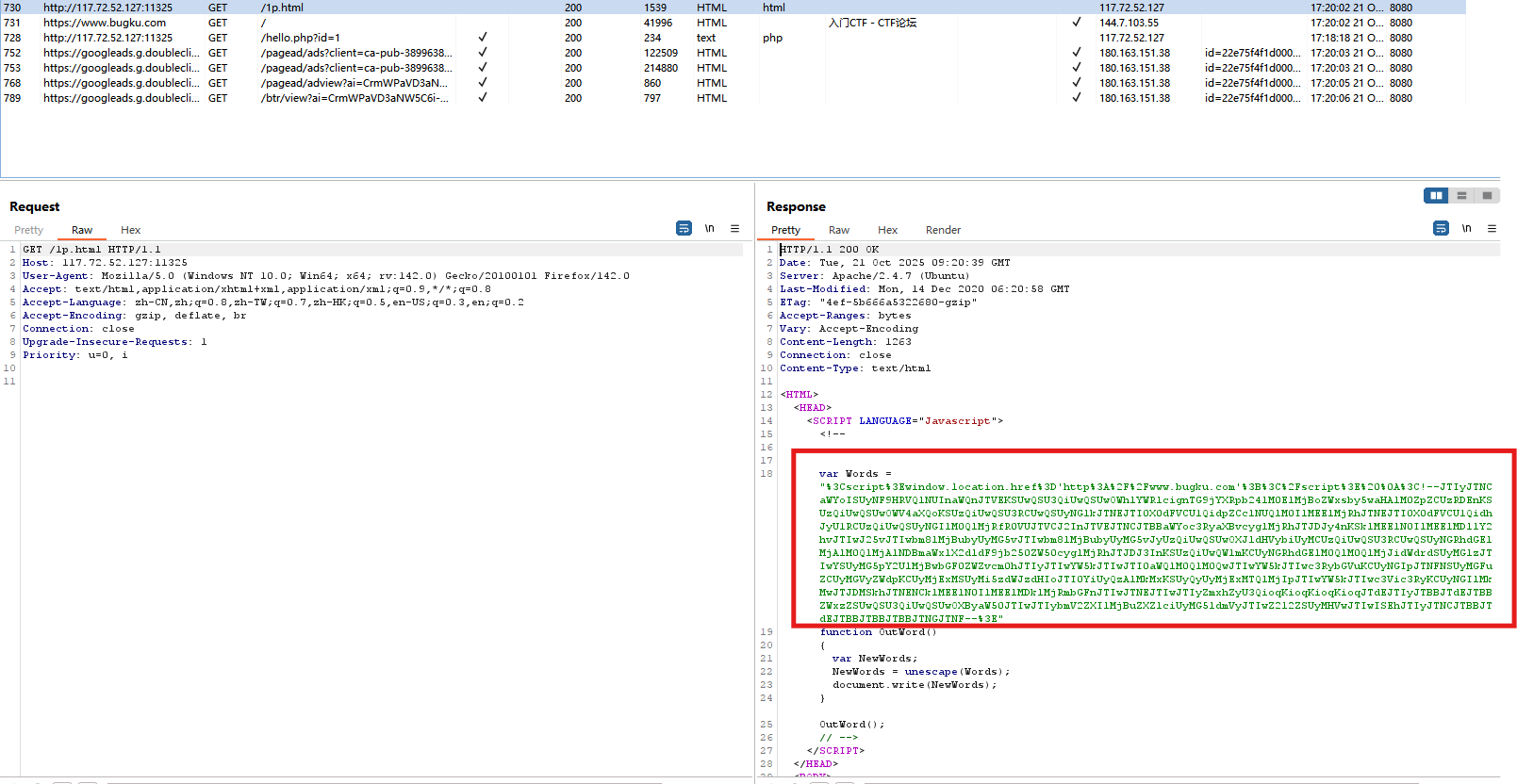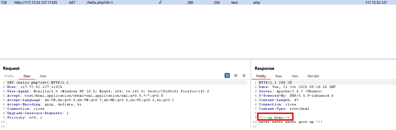 看bp中返回的数据。发现一段注释的html文件名。