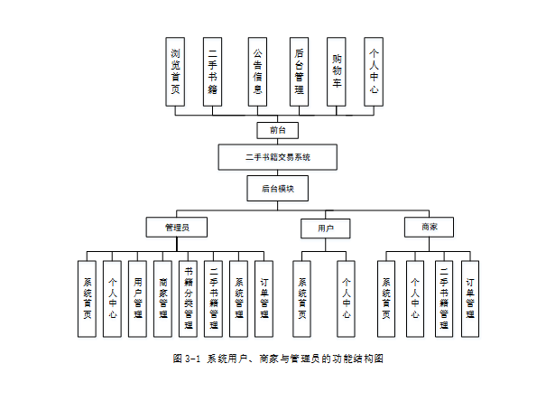 系统软件用户、商家与管理员的功能模块图如下图3-1所显示。