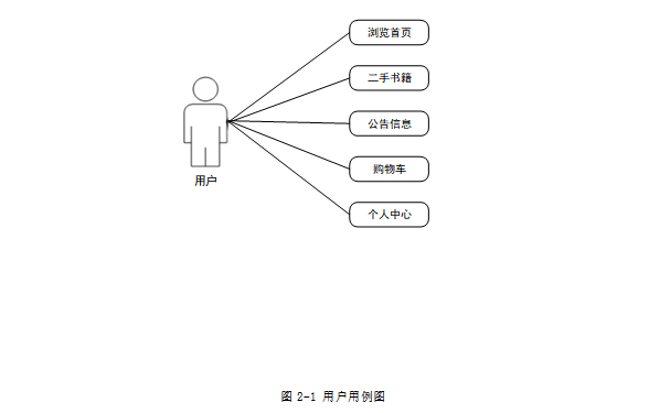主要使用者为用户。具备有:二手书籍、公告信息、购物车功能。用户用例图如图2-1所示。