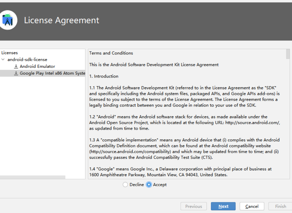 在弹出的许可协议窗口中选择"Accept"