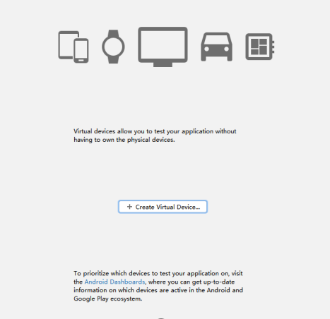 打开Android Studio,点击中间的"Create Virtual Device"按钮