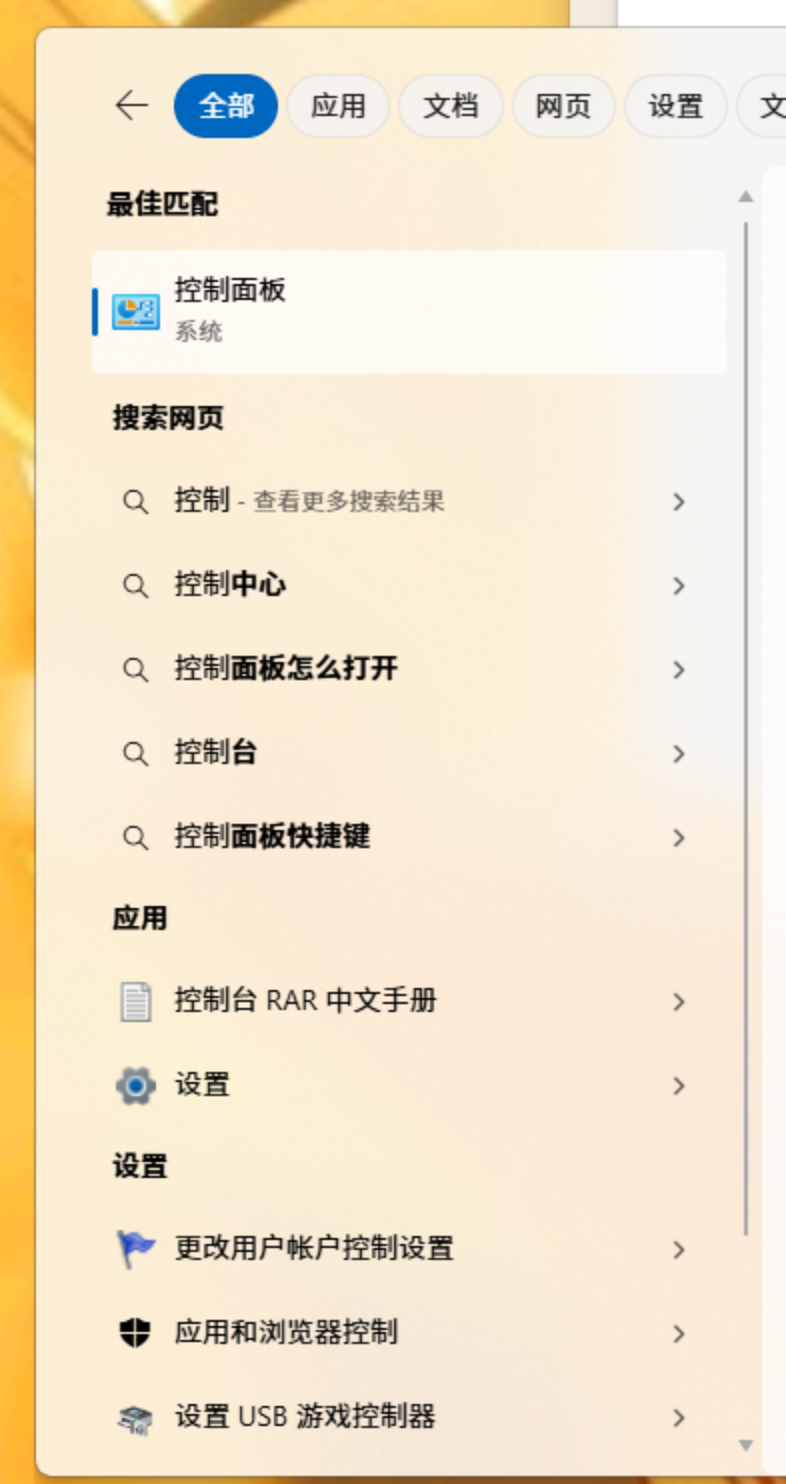 回到桌面,搜索并打开"控制面板"