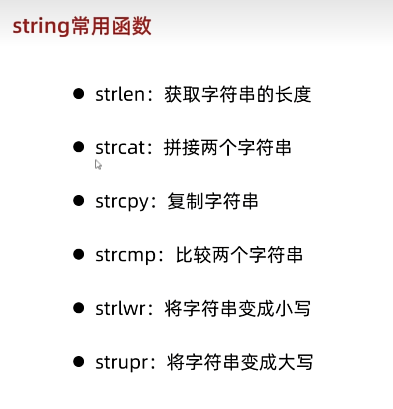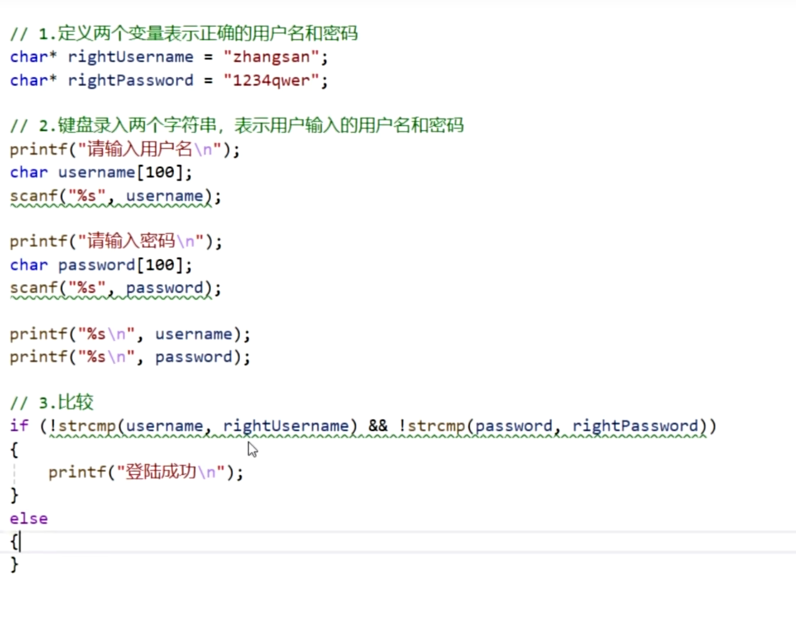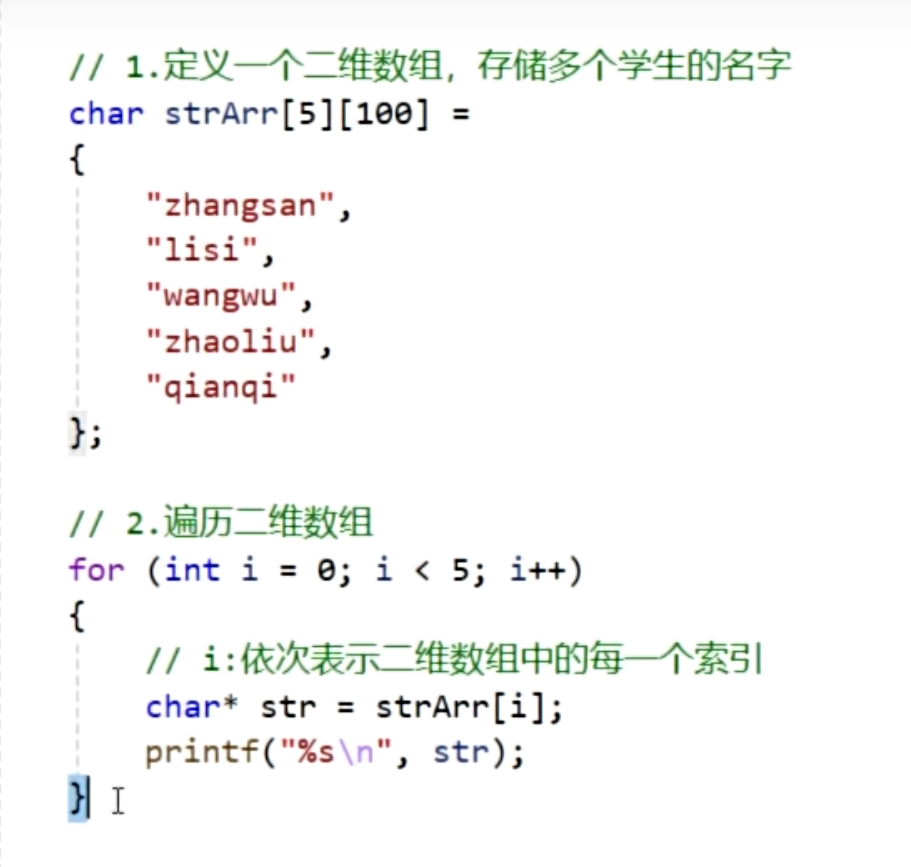字符串的两种定义方式第一种:利用字符数组+""第二种:利用指针+""练习:键盘录入字符串并且进行遍历为什么接受str没有&符号??正常赋值变量是&变量抠出来变量的地址赋值到地址,但是str这个数字在表达式中本身就是指针。字符串数组字符串的常见函数字符串练习:用户登录