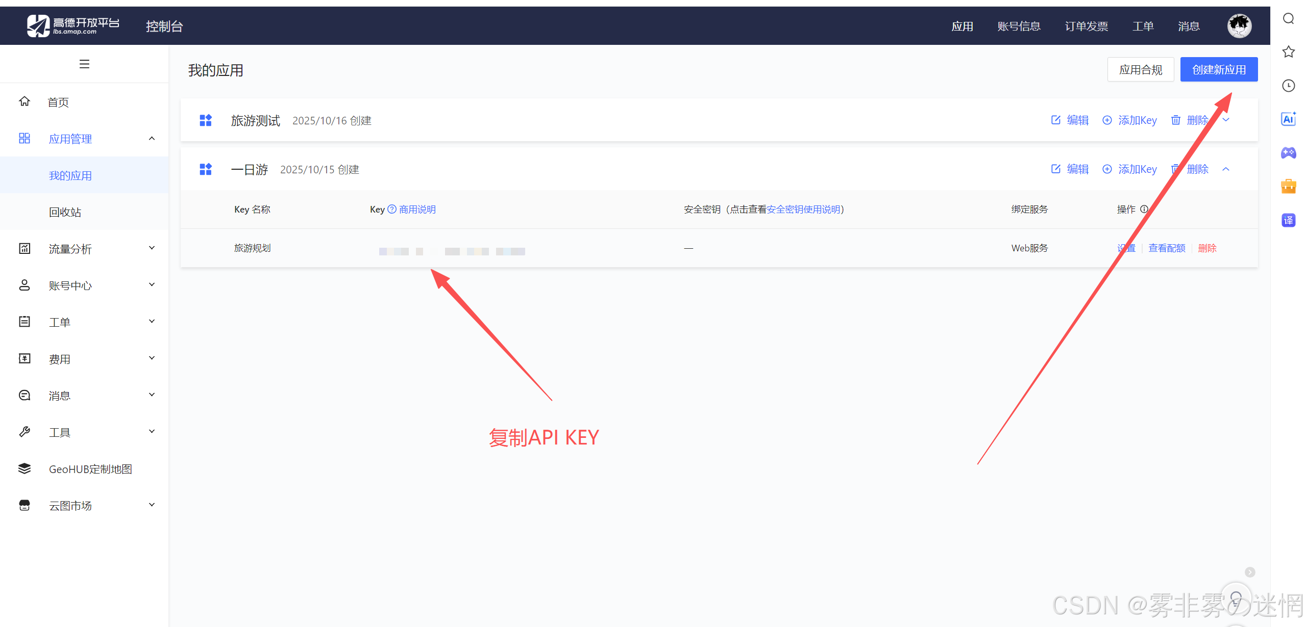 可以前往高德官网获取API KEY:https://console.amap.com/dev/key/app