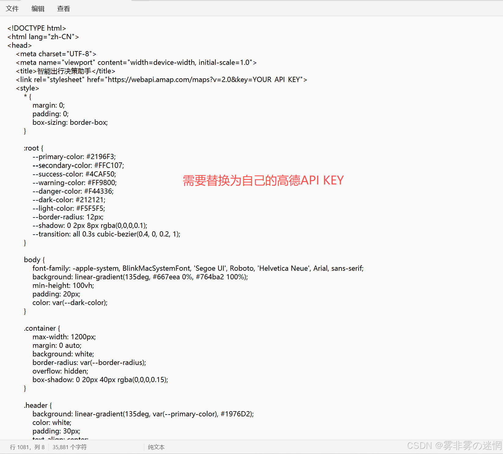 现在我们创建一个文档替换内容为网页源码,同时替换自己的高德API KEY调用: