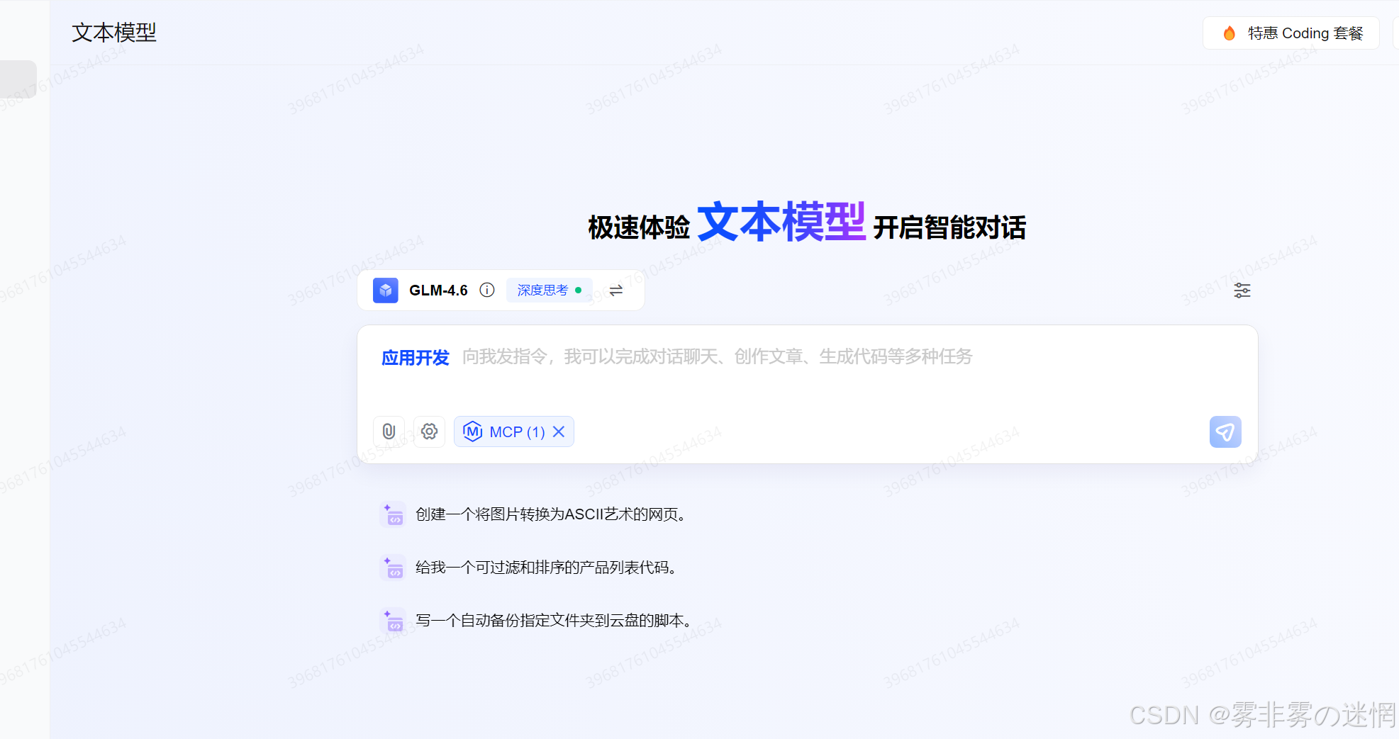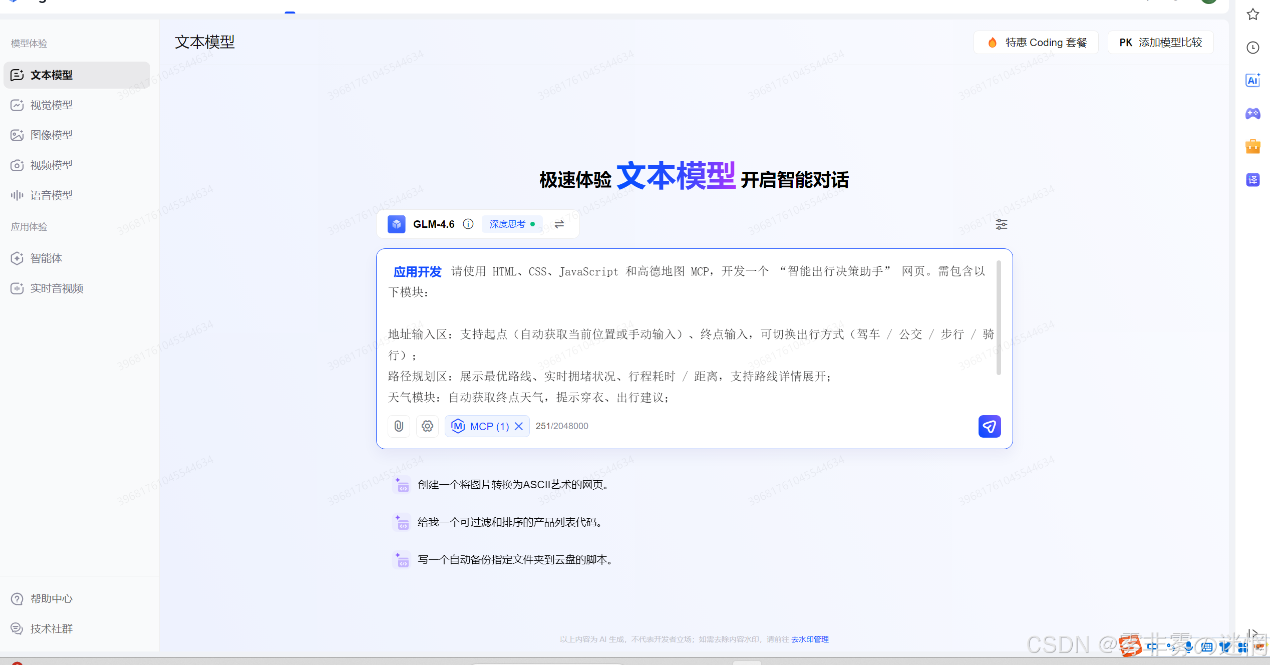 大家可以打开网页直接体验:https://bigmodel.cn/trialcenter/modeltrial/text