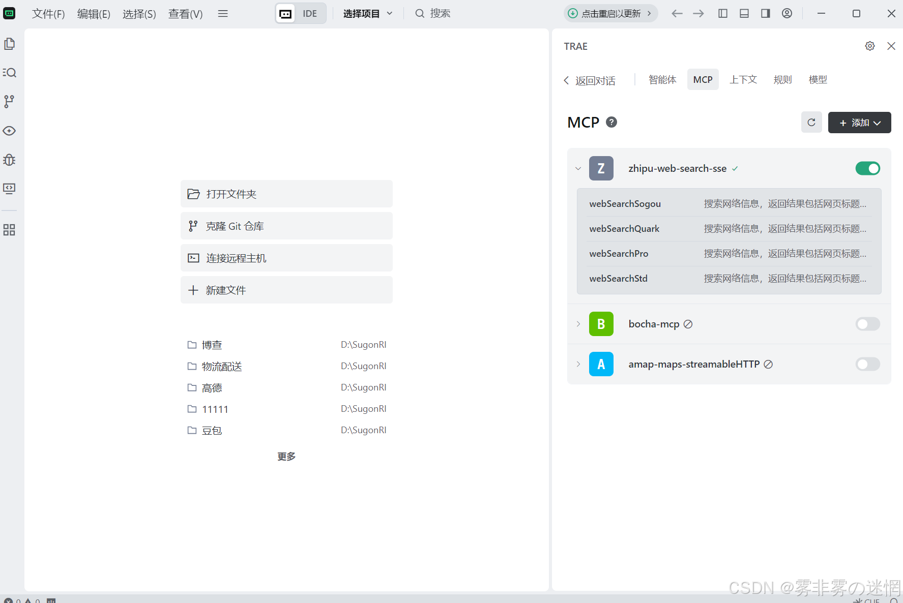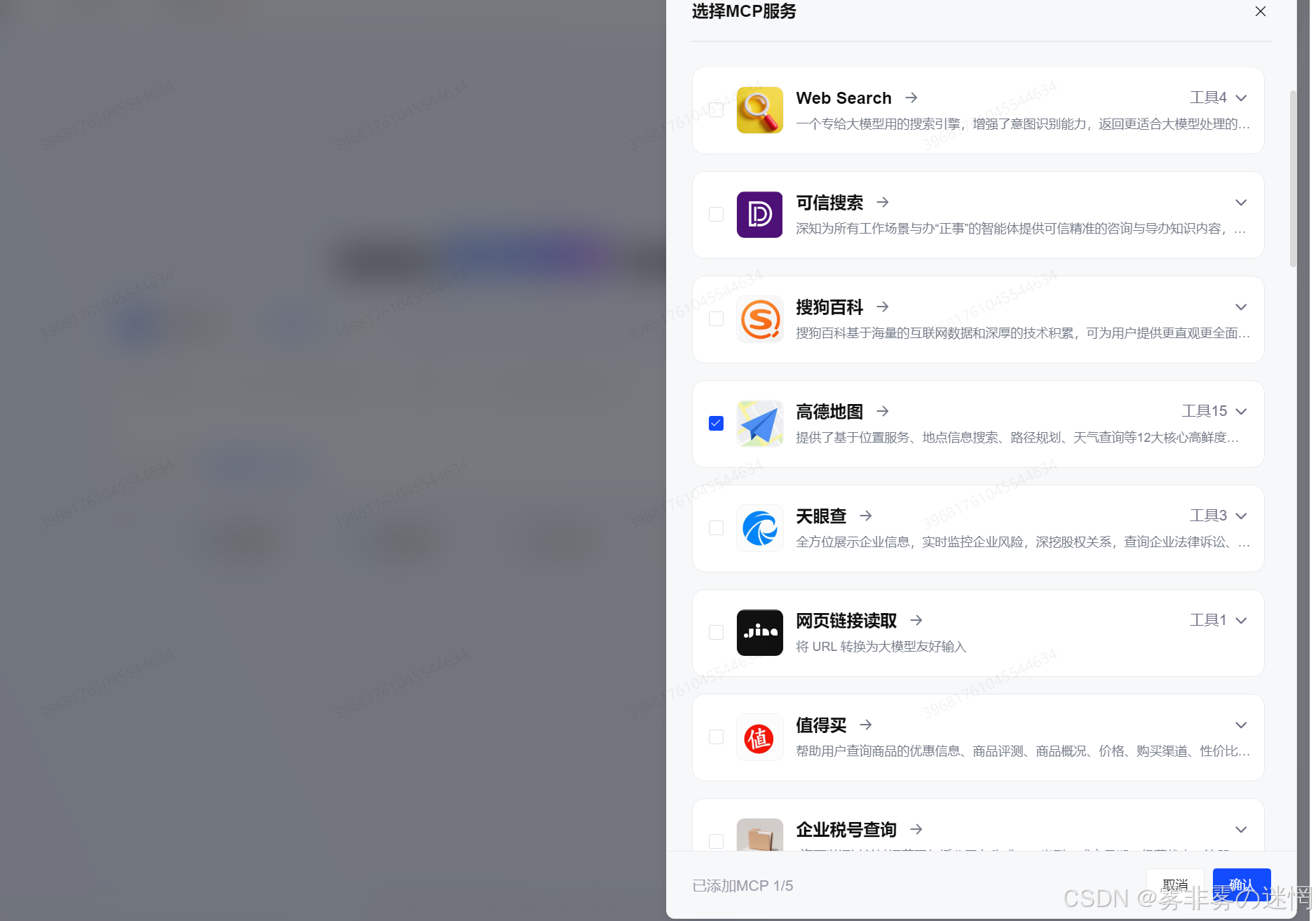 (1)较于传统联网搜索,可以扩展丰富我们的模型功能,这里选择调用MCP:以高德地图为例!