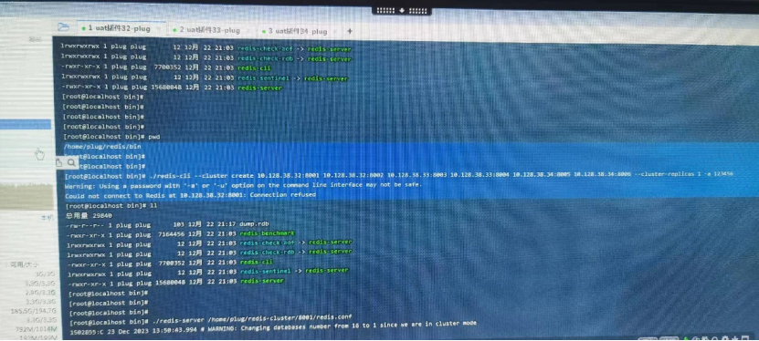 [root@localhost bin]# ./redis-cli -c -h 10.128.38.32 -p 8001 -a 123456
