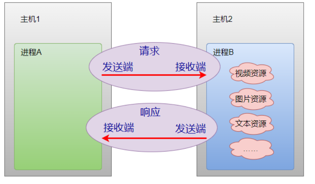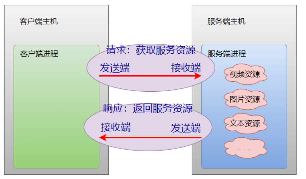 注意:发送端和接收端只是相对的,只是⼀次⽹络数据传输产⽣数据流向后的概念。