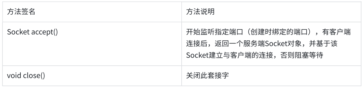 ServerSocket 类 中的方法