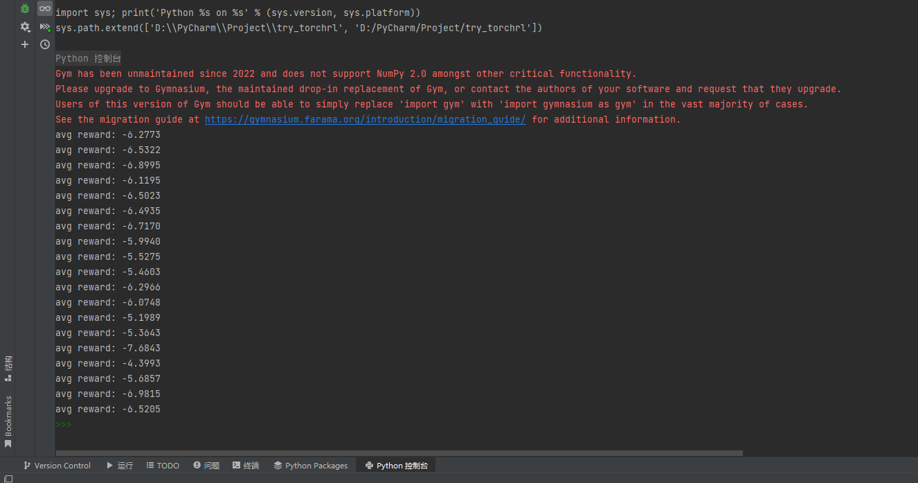 修改pycharm解释器为虚拟环境 torchrl_1 下的 python.exe,直接运行参考网址[3]中的python程序即可:
